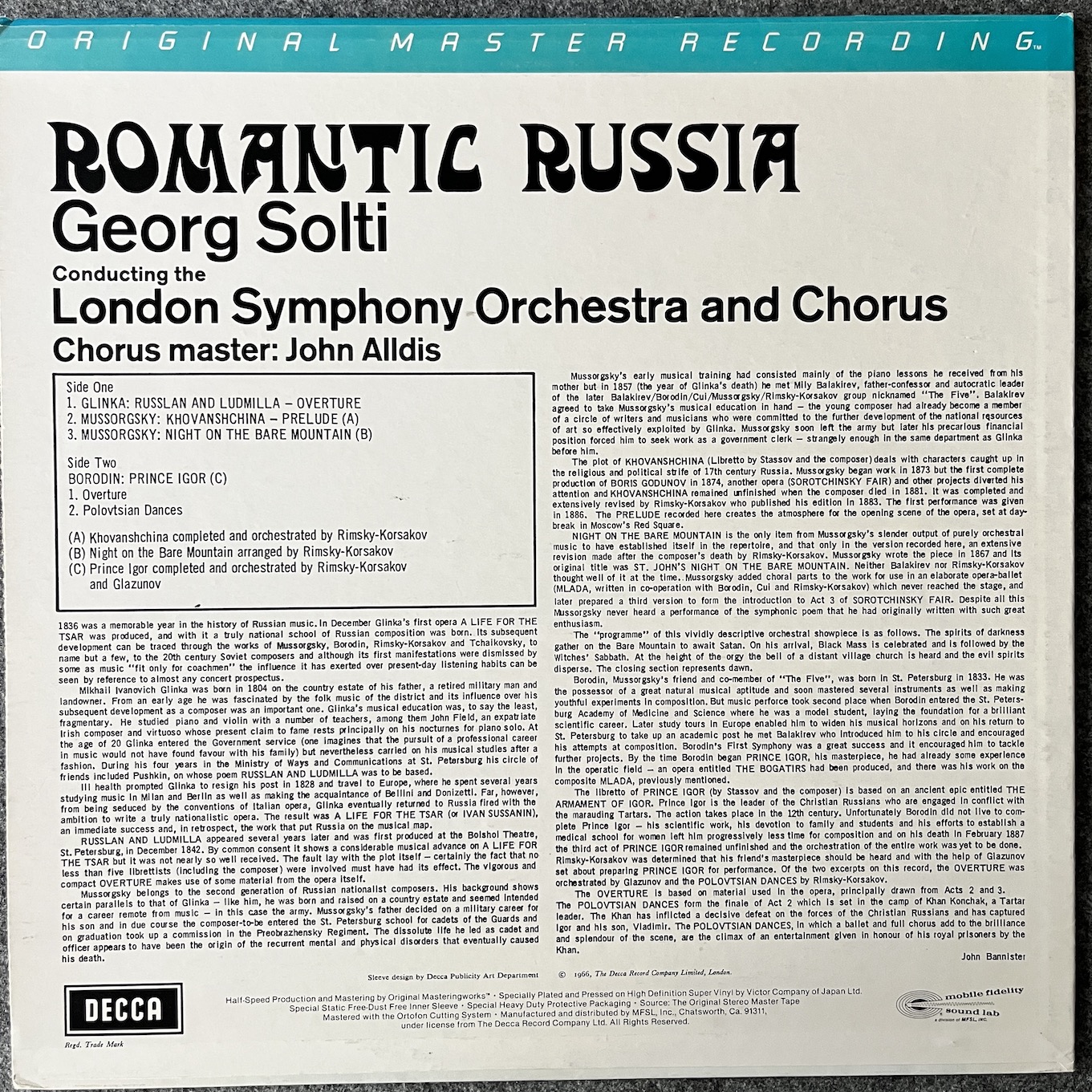 Vertrieb durch – Mobile Fidelity Sound Lab, Inc.