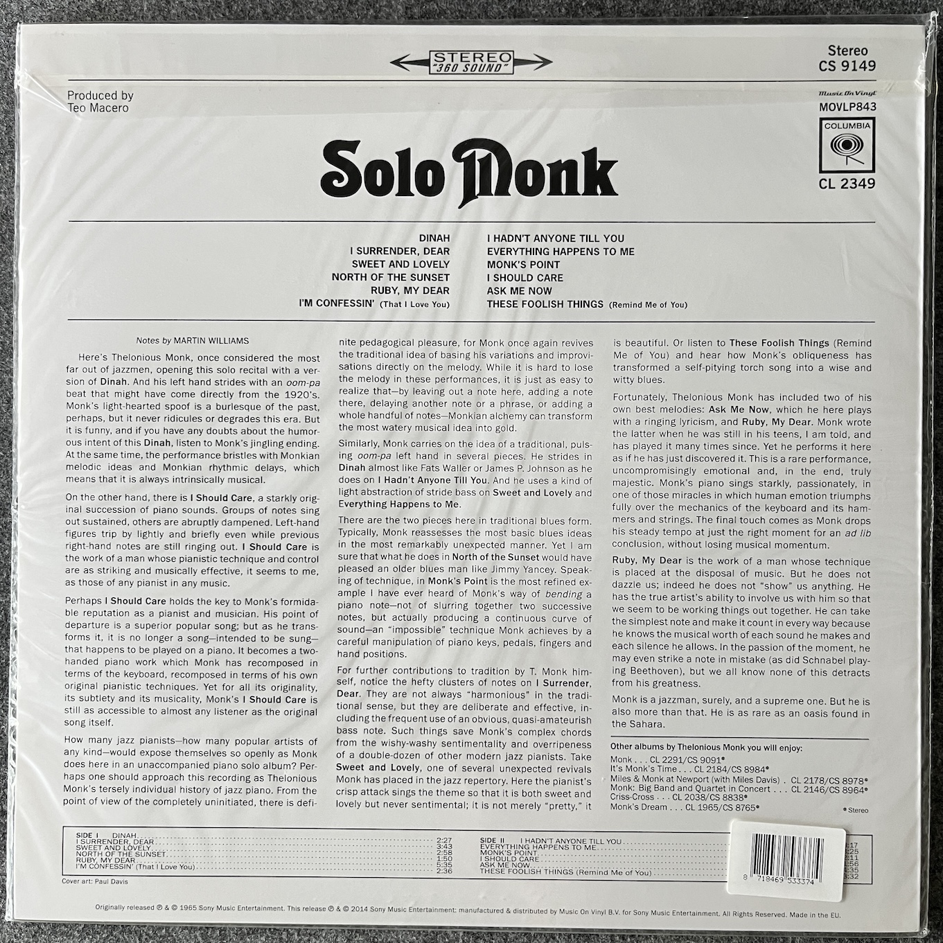 Music On Vinyl – MOVLP843, Columbia – CS 9149